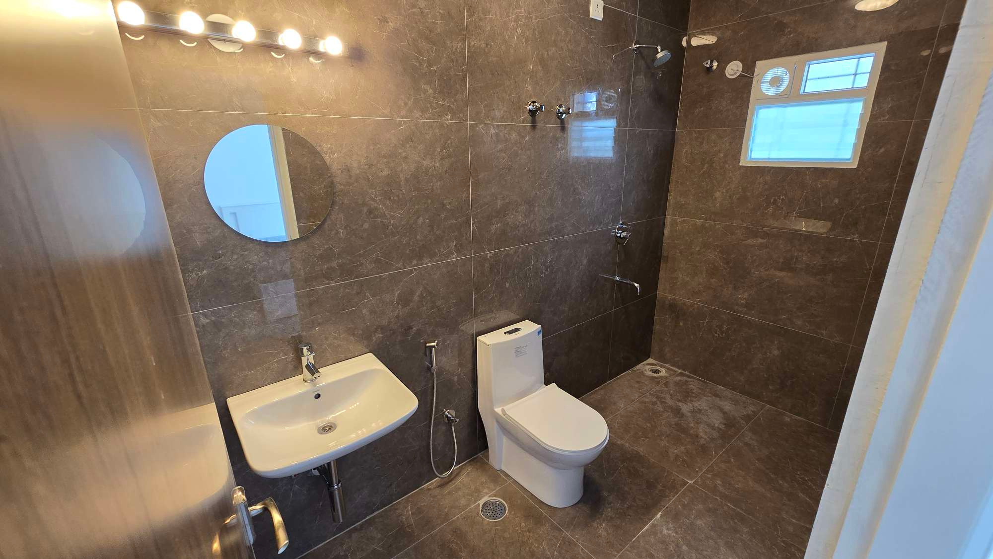 - 2 bathrooms with High Gloss tiles and JAQUAR CP fittings, with Glossy tiles upto the ceiling